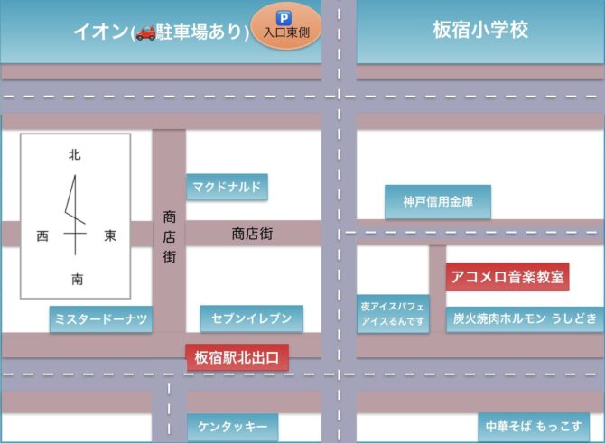 お車で来られる方は、板宿イオンの駐車場(122台収容)をご利用くださいい。